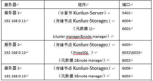 前提: 三台服务器创建 用户名为 kunlun 的用户,配置好三台主机间的信任关系。如果数据库用户名为其他用户名,则相应修改配置文件。